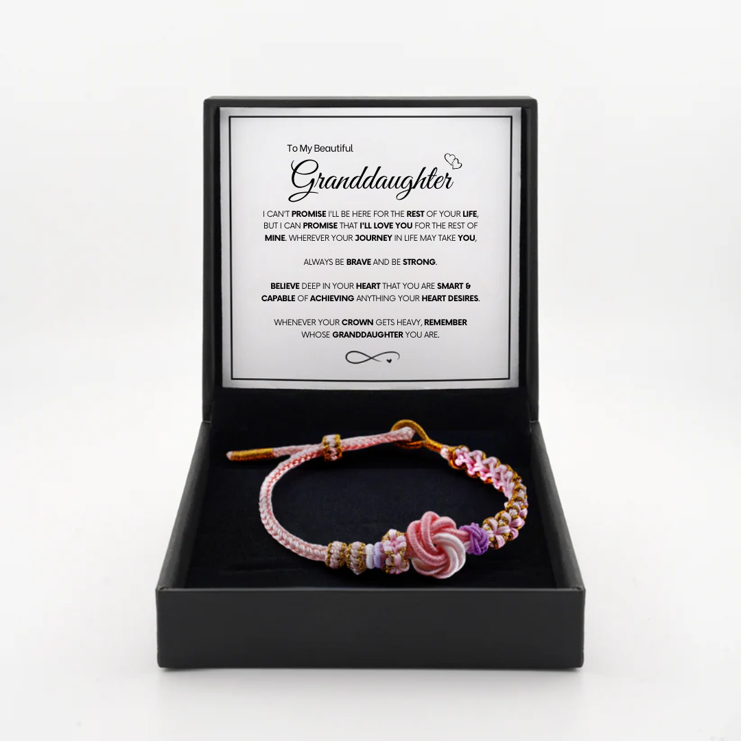 Show your granddaughter how much she means to you. This knot bracelet is more than just an accessory—it's a profound symbol of your eternal bond, a daily reminder of the love that will always connect you.