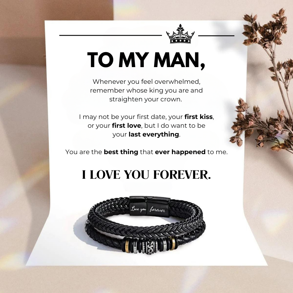 The sleek and masculine design will compliment any outfit. The words "Love You Forever" are engraved on the bracelet, making it a constant reminder of your love and support.