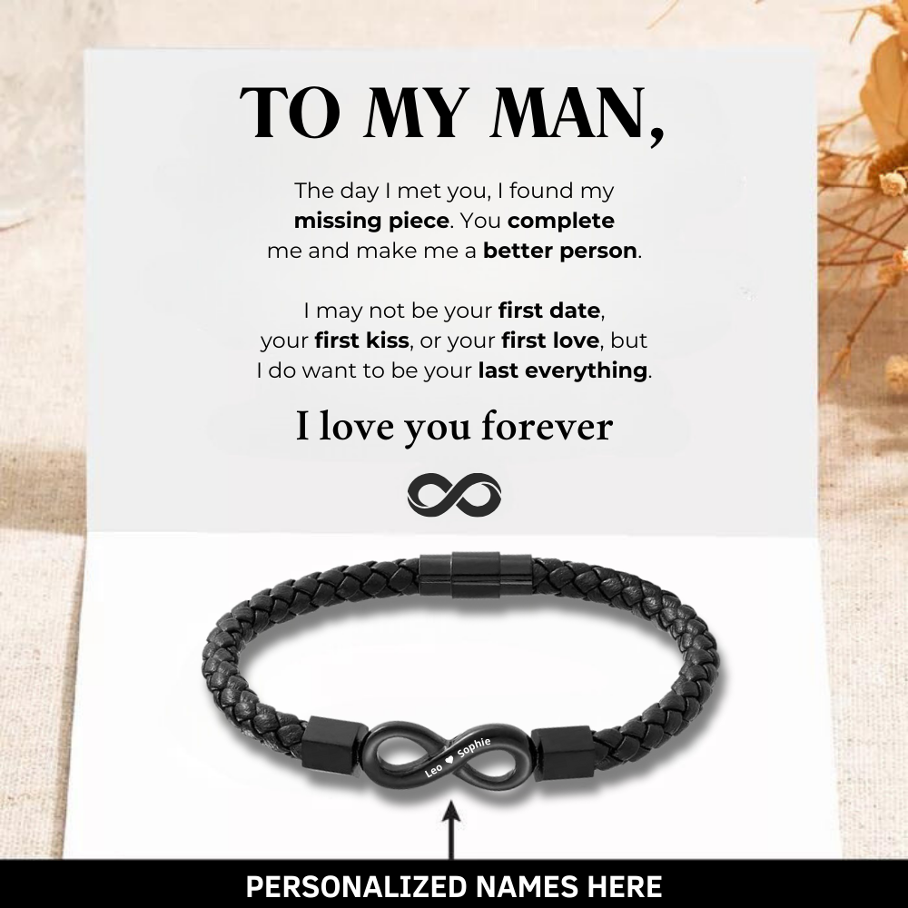 To My Man - Personalized Leather Infinity Bracelet