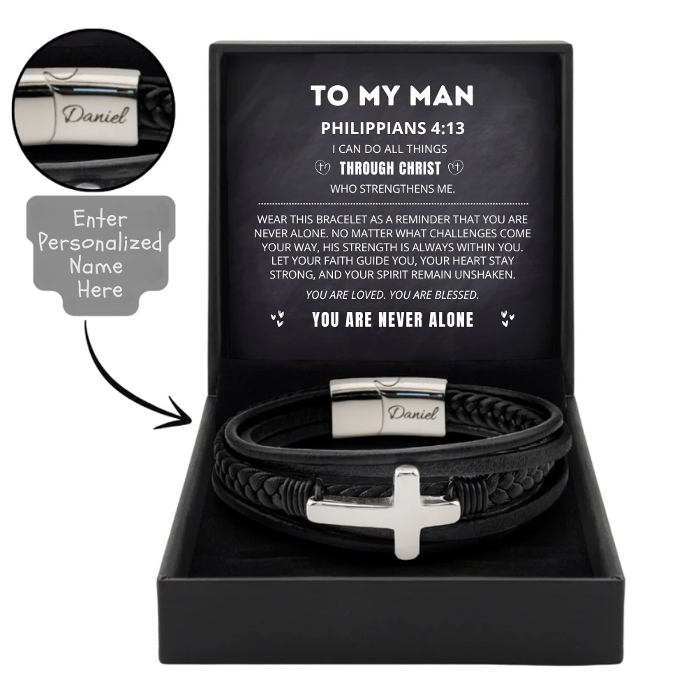 Give your man a meaningful reminder of your love and shared faith. This cross bracelet is more than just jewelry - it's a symbol of love, connecting your wisdom and his journey.
